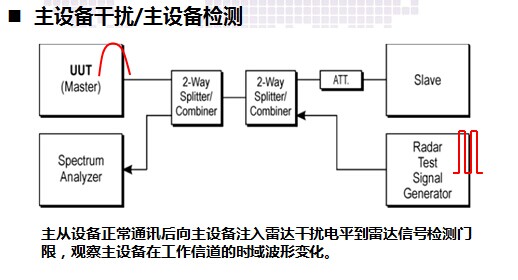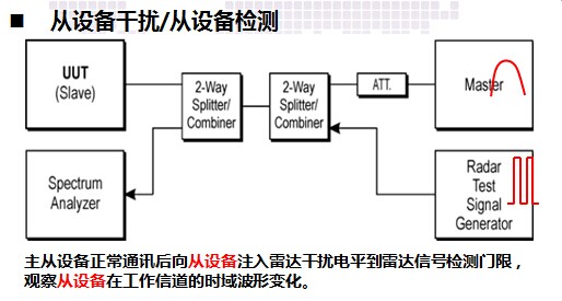 在雷达工作频率高子带区(5,470-5,725MHz),从设备应满足(5,250-5,350MHz)的最低输出功率要求(小于17dBm)。