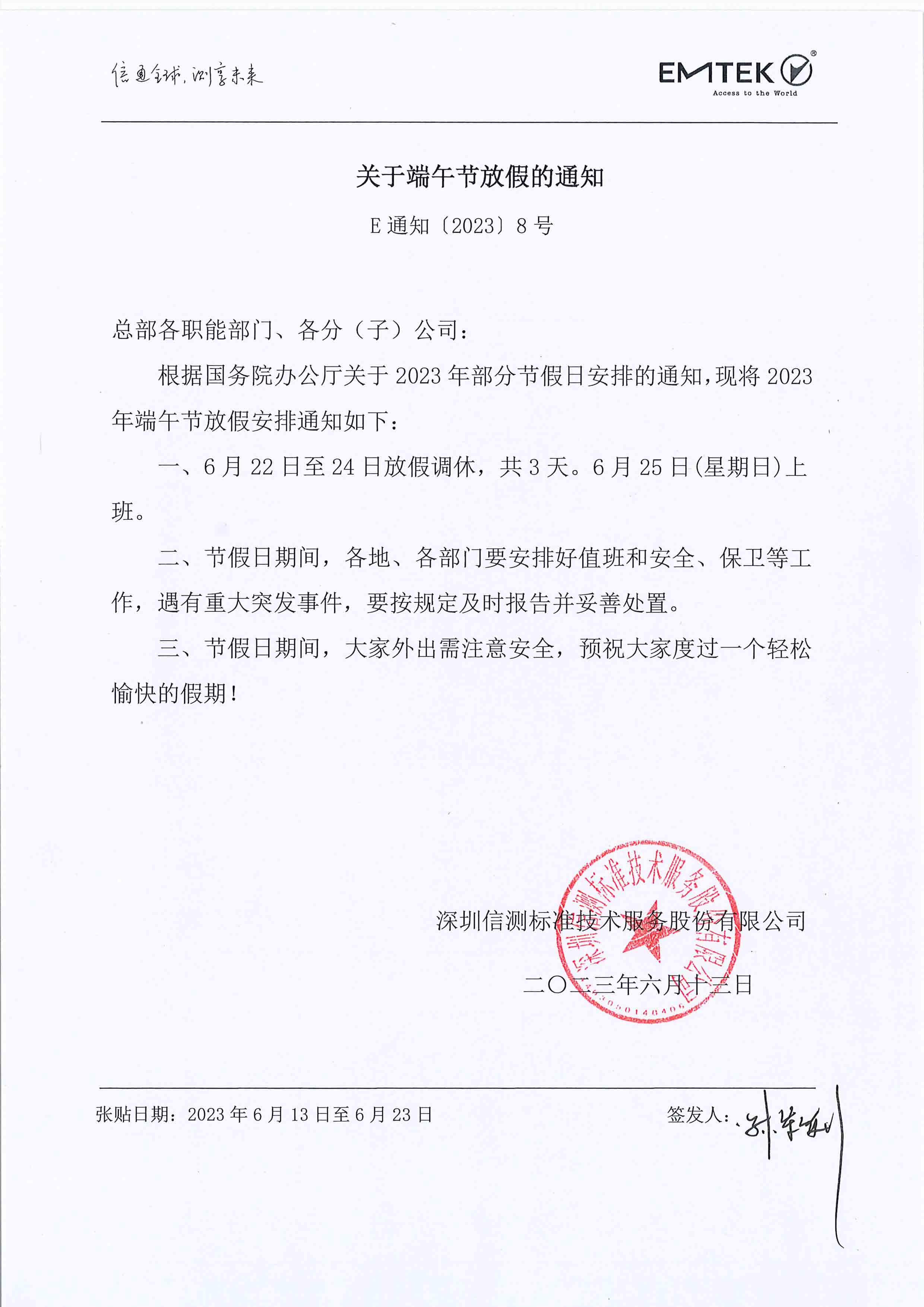 2023年端午节放假的通知