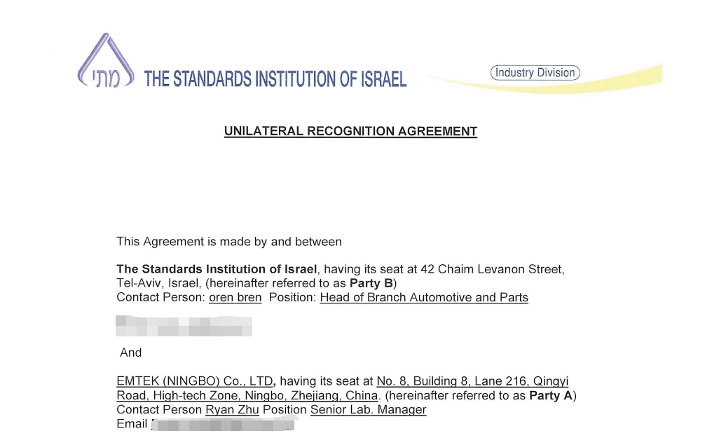 近日,宁波市信测检测技术有限公司与以色列标准协会The Standards Institution of Israel(简称SII)签署合作协议,顺利成为SII官方认可实验室,可为企业提供产品出口以色列的测试、认证和法规指导服务。