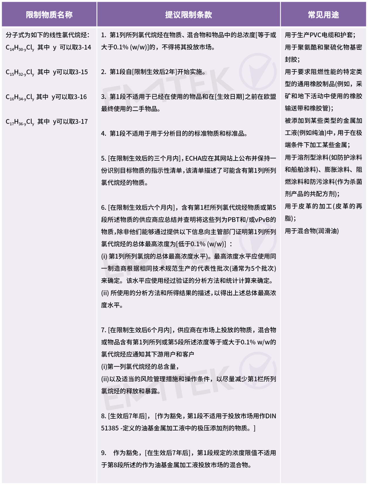 ECHA提议新增MCCP于REACH 附录17限制条款