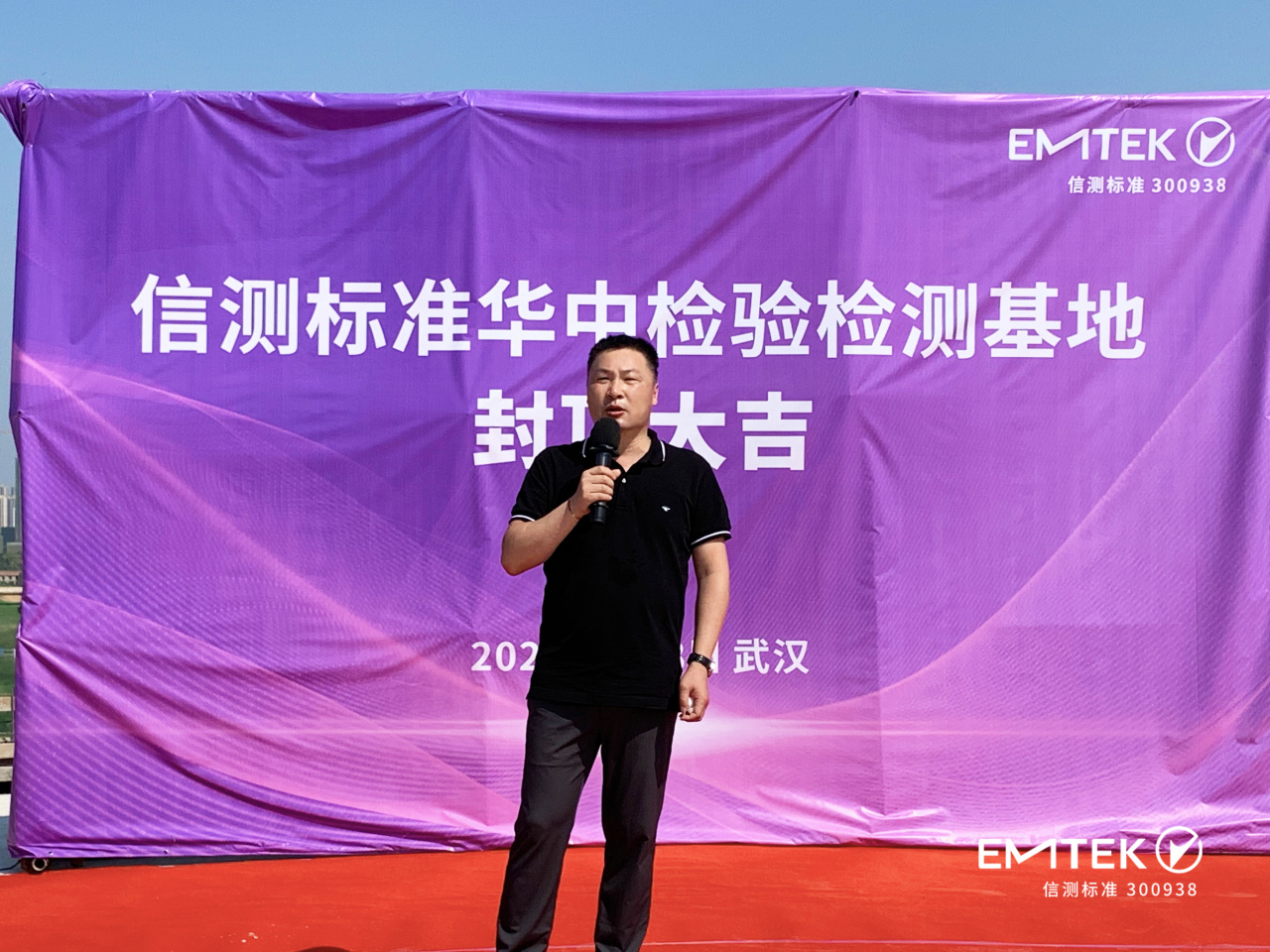 在封顶仪式上,信测标准董事长吕杰中致辞感谢施工单位、监理单位及所有建设者的辛勤劳动和各级主管单位的大力支持!新基地建设以来一直以紧密有序、有条不紊的节奏进行,从一块平地到高楼耸立,顺利安全完成施工进度。吕杰中董事长对华中检验检测基地的未来发展寄予了殷切期望,并祝福新基地建设蓬勃发展、蒸蒸日上!