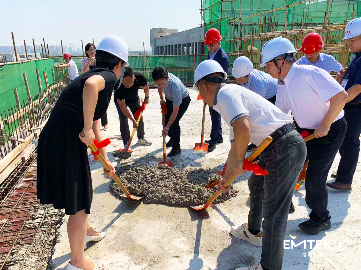 随后,出席仪式的重要领导和嘉宾们手握象征着八方来财的金铲子,为信测标准华中检验检测基地浇筑封顶。此次新基地顺利封顶,意味着基地建设项目取得了阶段性胜利,为后续剩余工程早日竣工及基地投入使用奠定了良好的基础。