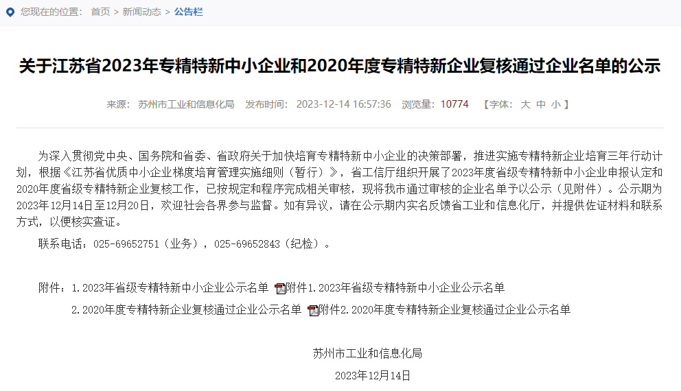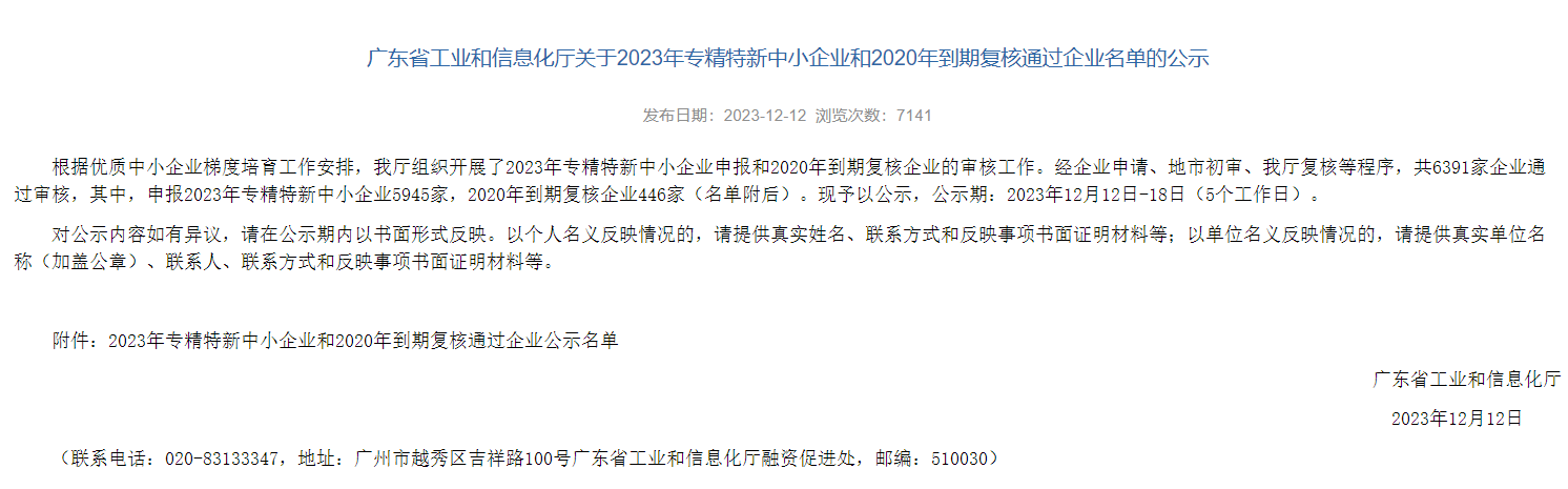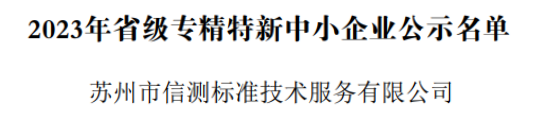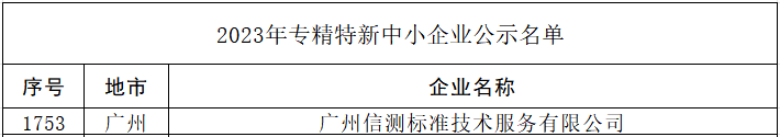近日,广东省工业和信息化厅和苏州市工业和信息化局分别发布《广东省工业和信息化厅关于2023年专精特新中小企业和2020年到期复核通过企业名单的公示》和《关于江苏省2023年专精特新中小企业和2020年度专精特新企业复核通过企业名单的公示》,经过相关审核,凭借在检测领域持续创新和优质技术水平等优异表现,信测标准广州公司、苏州公司成功入选,被授予“广东省2023年专精特新中小企业”和“江苏省2023年专精特新中小企业”称号。