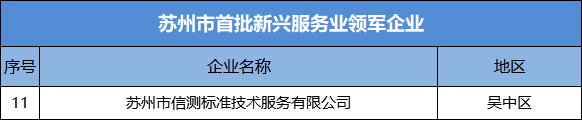 近期,苏州市发改委组织开展2023年度苏州市新兴服务业领军企业认定工作,经企业申报、各地各部门初审推荐、专家评审及网上公示等程序,报市政府同意,信测标准苏州公司成功入选,获评“苏州市首批新兴服务业领军企业”,系苏州市首批获评该荣誉的企业。