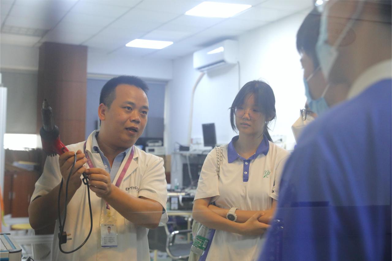 讲座结束后,在工程师的带领下,科创指导老师和学生们走进信测实验室和研发创新一线,实地观摩并亲身体验真实科学环境。在EMC(电磁兼容性)实验室与安规实验室,学生亲自动手进行电源线扭典和冲击的科学实验操作,通过实践操作,学生更加深刻体会到科学原理的奥妙与科学方法的精髓。每一次的实验尝试,不仅是对思维的拓展,对技能水平的锤炼,更为学生们未来的科技创新之路铺设了坚实的基石。