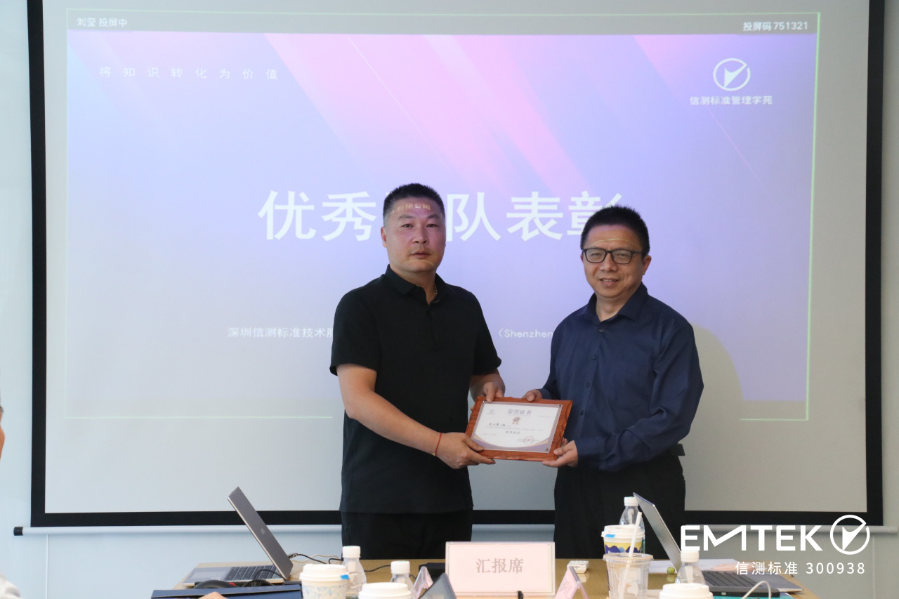 结业仪式当天,项目迎来了高潮——小组汇报。各小组通过连线汇报的方式展示了他们在培训期间的学习成果和实践经验,经过激烈的角逐,评选出了优秀团队和优秀学员。这些荣誉不仅是对他们个人和团队努力的认可,也是对他们项目管理能力提升的肯定。信测标准董事长吕杰中先生为优秀代表颁发了荣誉证书。