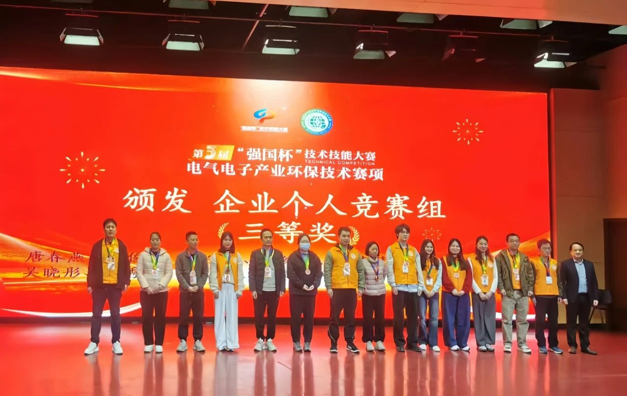 2025年1月11日,备受瞩目的第三届“强国杯”技术技能大赛电气电子产业环保技术赛项总决赛圆满落幕。广州信测标准技术服务有限公司参赛选手历经激烈角逐、一路过关斩将,凭借扎实的专业知识、丰富的实践经验以及坚韧不拔的顽强毅力,最终荣获三等奖的好成绩,充分展现出专业技能,彰显出拼搏奋进、勇于创新的竞技精神。