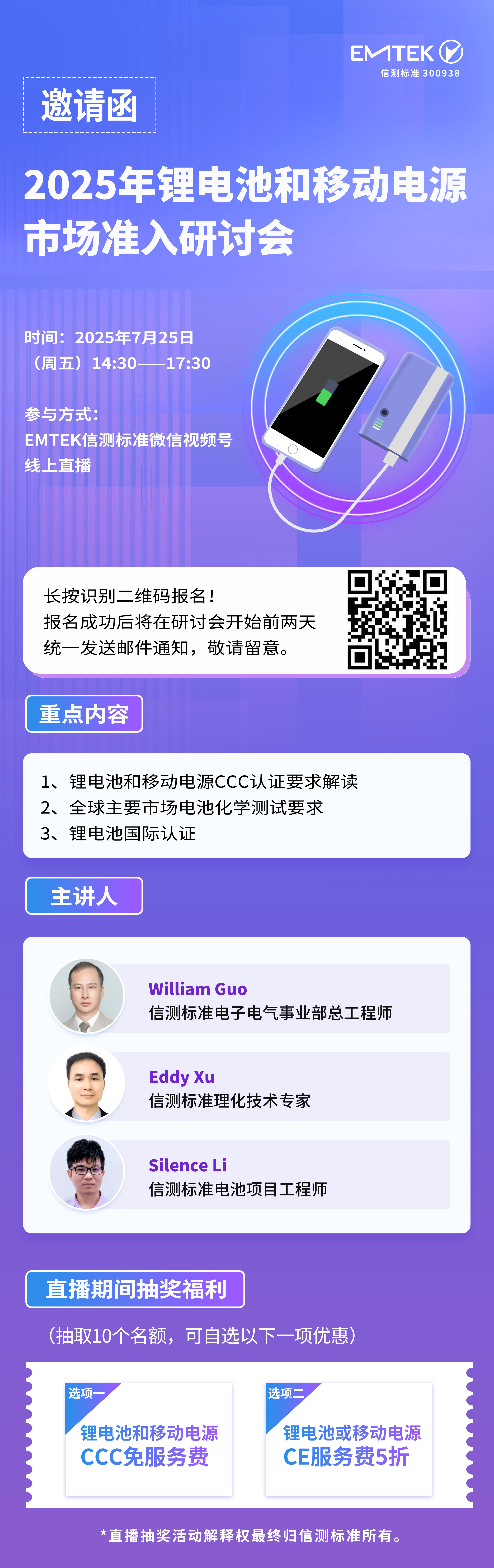 邀请函|与您相约7月25日2025年锂电池和移动电源市场准入线上研讨会