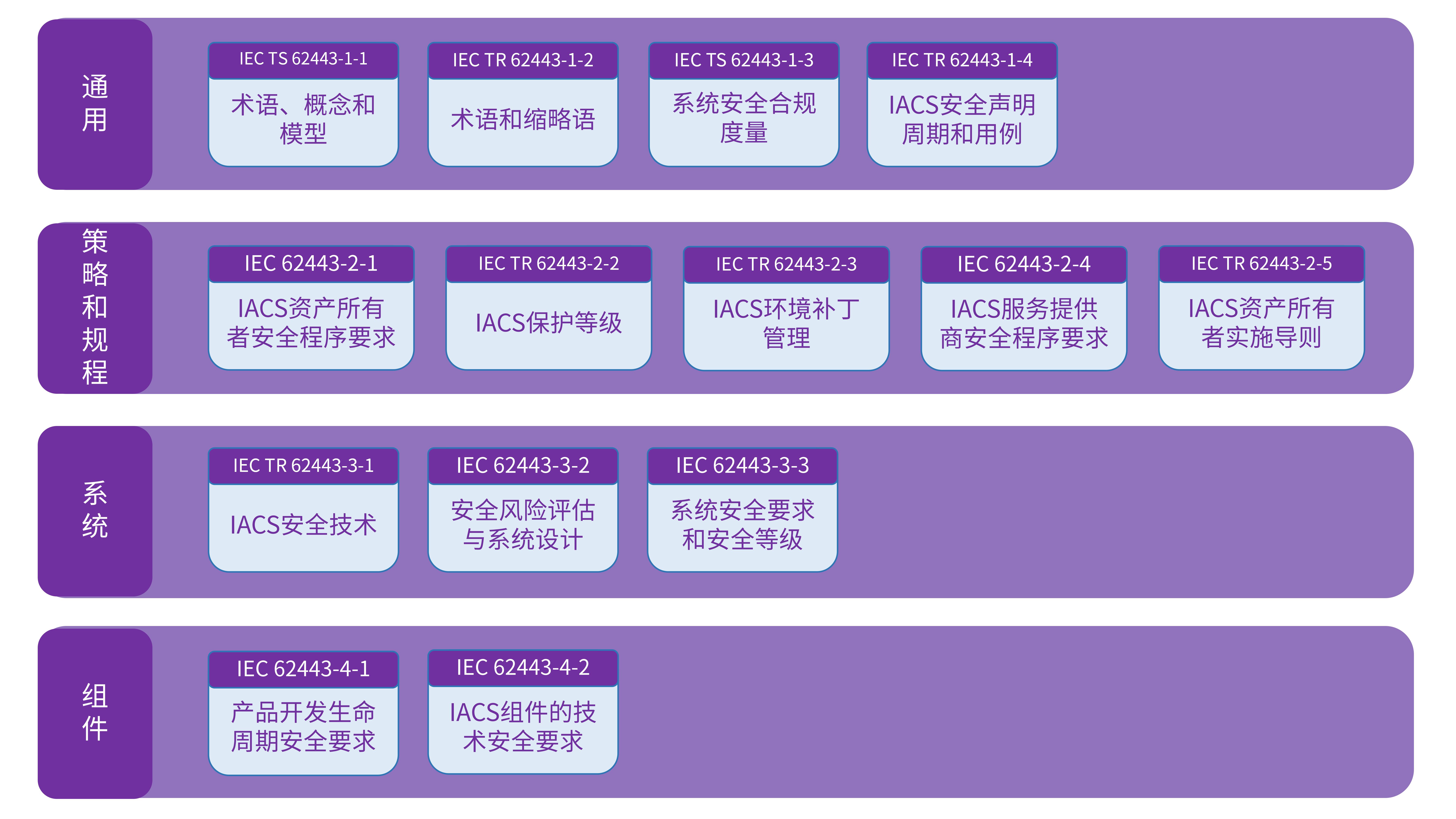 IEC 62443共分为四大部分,分别是: