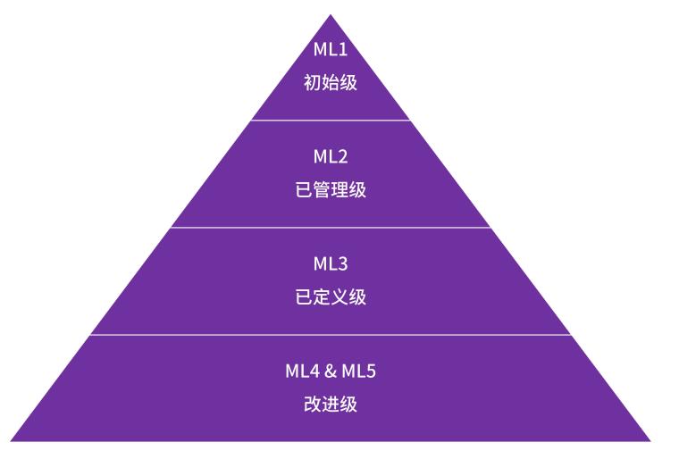 成熟度模型共有5个级别(ML1~ML5):