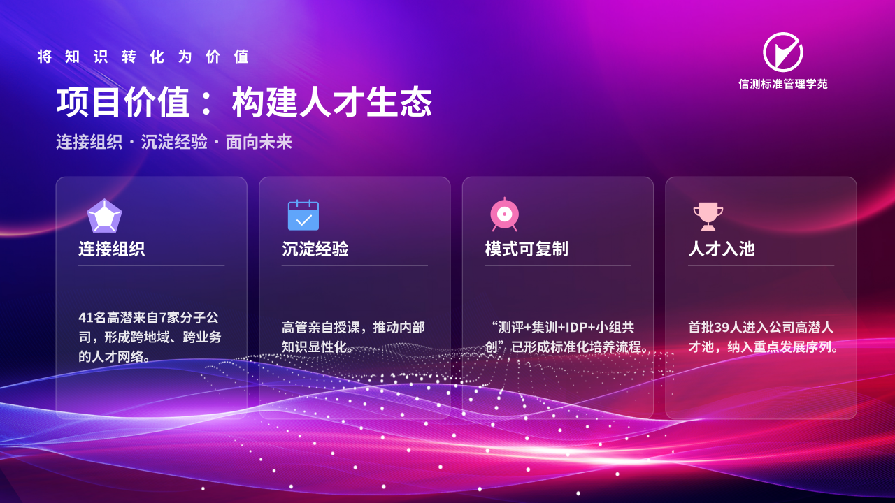 从培养模式上,本次项目通过“测评、集训、岗位实践”等形式,注重发挥团队的共创与融合能力,已经形成标准化和可落地的、可复制的培养模式,为未来人才培养工作打下良好基础;