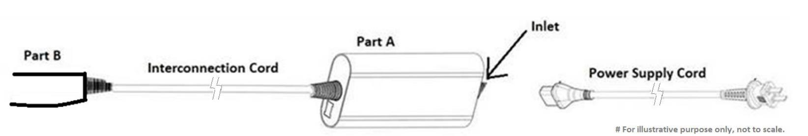 - 整个器具(包括 A 部分、互连线和 B 部分)设有器具插座,电源线组的软线中没有开关、自动控制装置或电源。