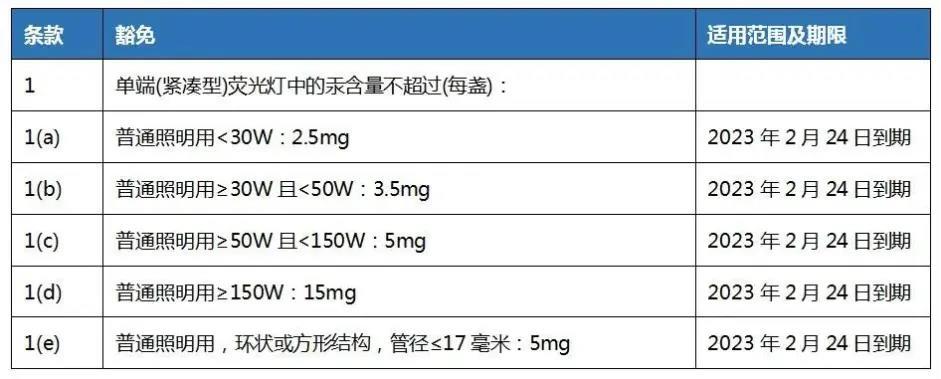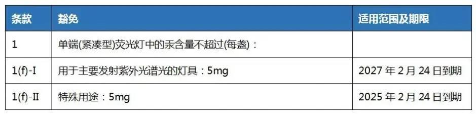 根据(EU) 2022/276,RoHS指令(2011/65/EU)附件III第1, 1(a), 1(b), 1(c), 1(d)和1(e)条被替代如下:
