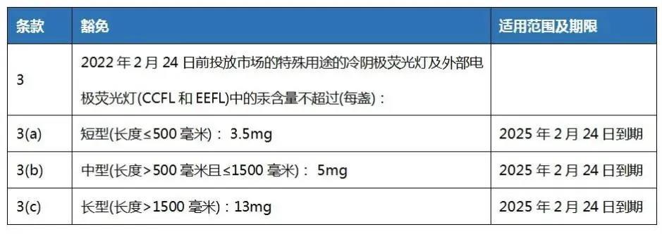 根据(EU) 2022/274,RoHS指令(2011/65/EU)附件III第3, 3(a), 3(b) and 3(c)条被替代如下: