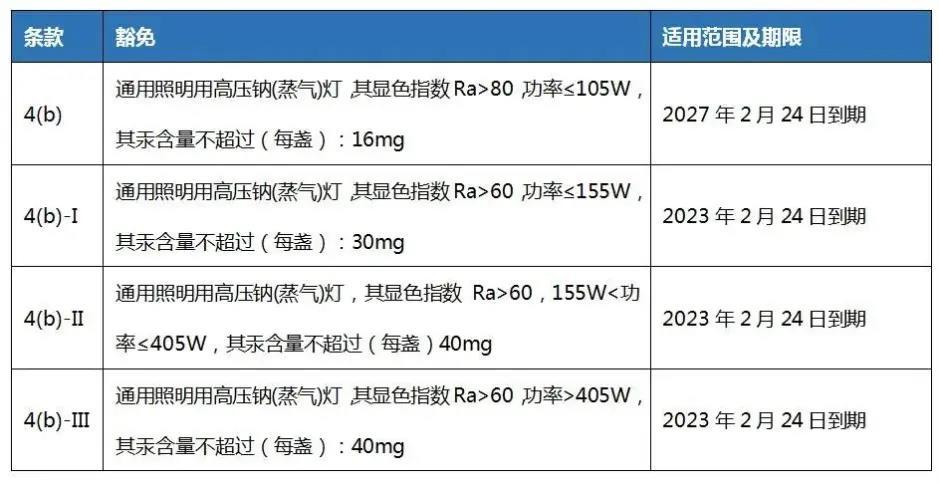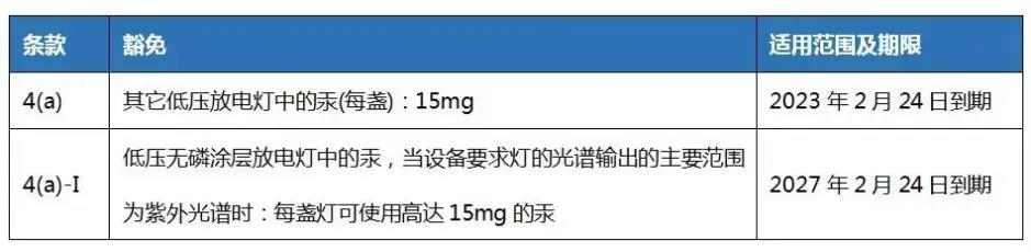 根据(EU) 2022/283,RoHS指令(2011/65/EU)附件III第4(b), 4(b)-I, 4 (b)-II和4(b)-III条被替代如下:
