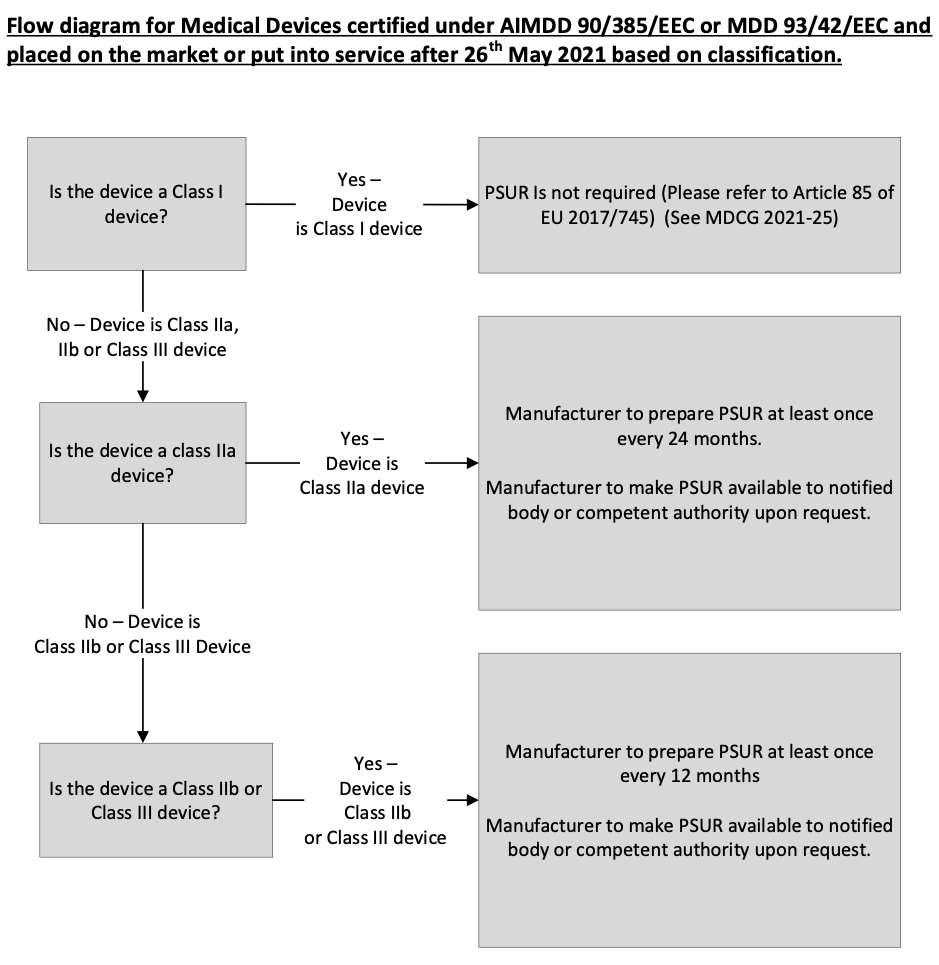 基于遗留设备分类,确认 PSUR 要求的流程图