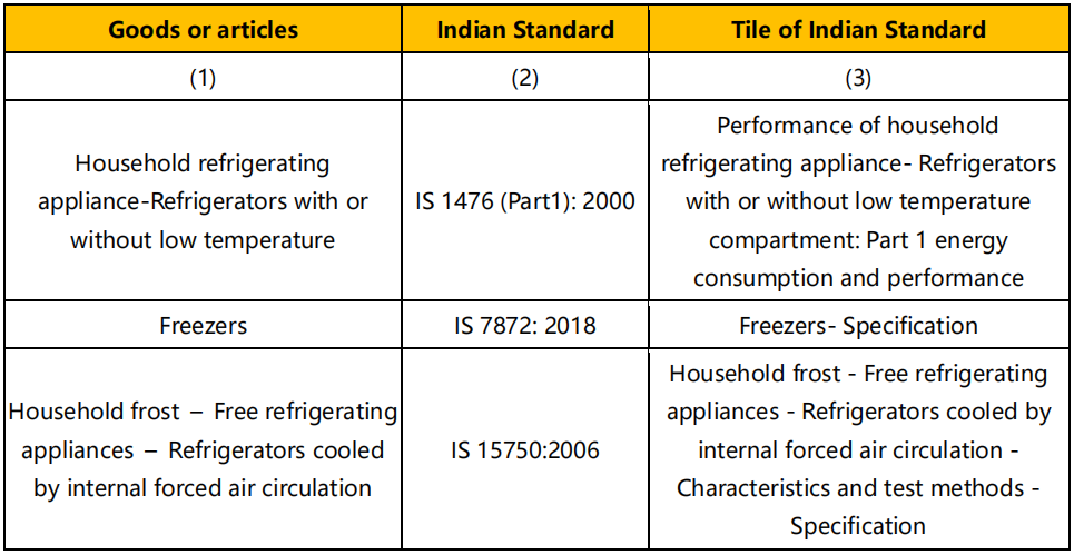 2022 年 12 月 14 日,印度标准局(BIS)发布公告,制冷设备强制安规 ISI 认证的实施时间再次推迟实施,下列产品的强制日期推迟到 2024 年 1 月 1 日。
