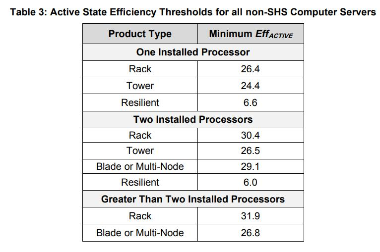 4.0 版本中对于非大容量服务器的活动状态效率阈值要求: