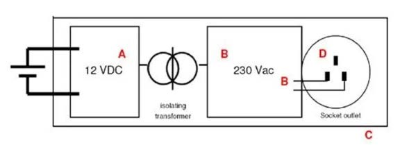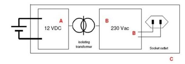(2)从逆变输出(B)到可接触表面(C):双重或加强绝缘