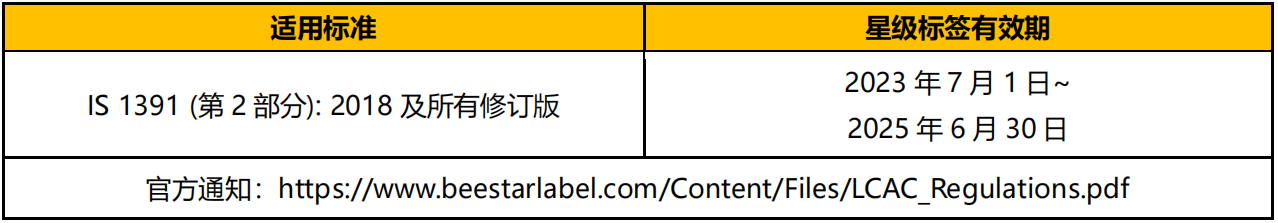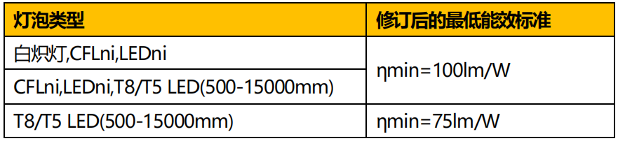 (2)所有受管制的灯泡 tick 评级将整合为单一评级,如下表: