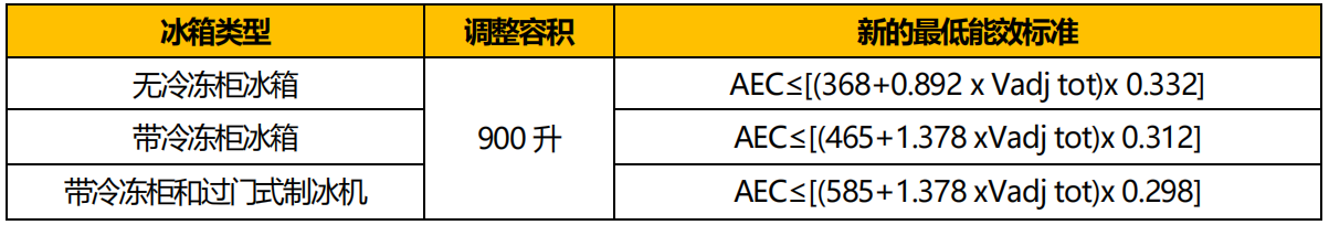 自2025 年4 月1 日起,在新加坡销售的所有冰箱都必须符合修订后的MEPS 要求,具体要求如下表:
