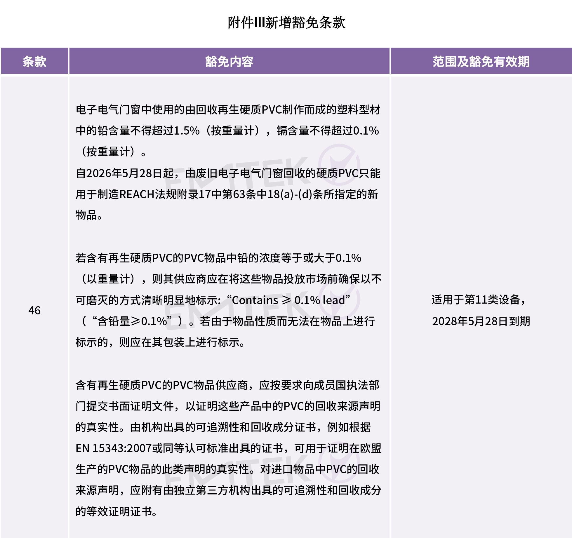 RoHS指令Annex III 提议新增第46条关于lead 和 cadmium豁免条款