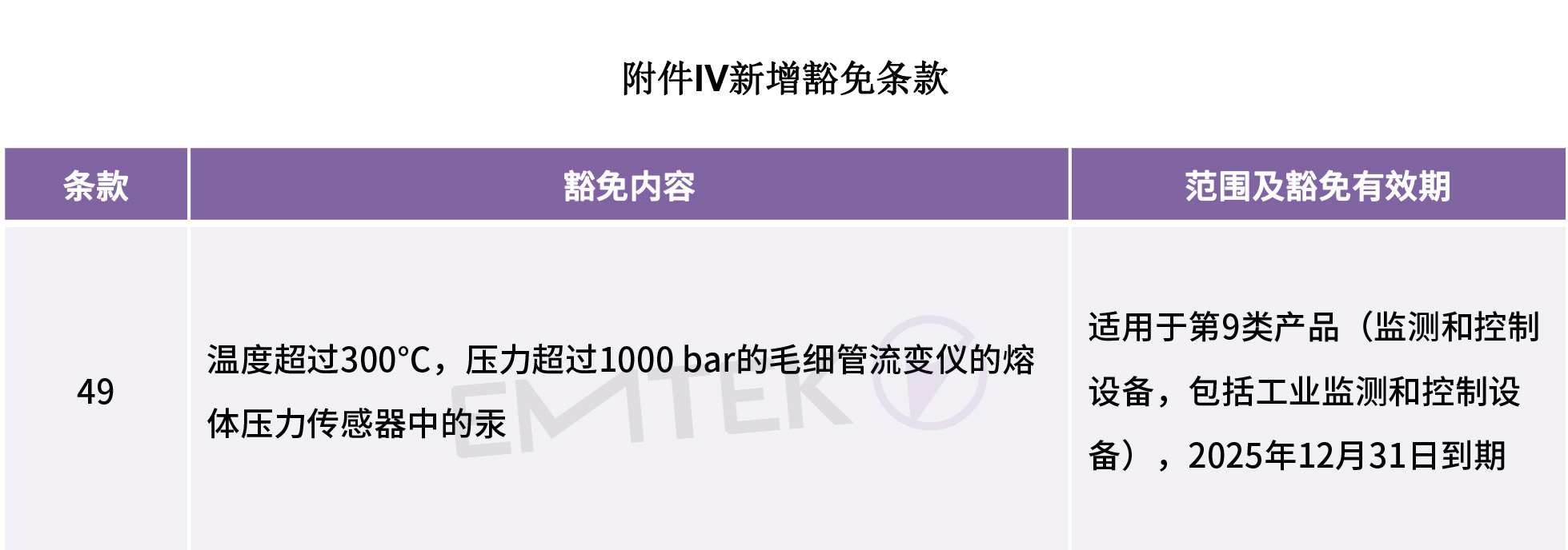 2023年7月11日,欧盟官方公报发布了指令(EU)2023/1437,在RoHS指令附件IV中新增第49条关于汞的豁免条款,针对第9类产品 - 监测和控制设备,包括工业监测和控制设备,将于发布后的20天后生效。