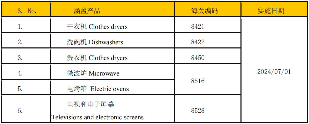 更新目前已列管的五类产品能效标准,将于2025 年 4 月1 日强制实施最新版。