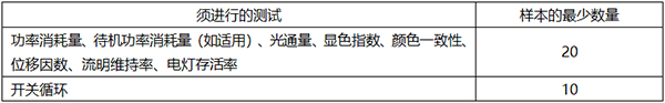 (注:进行以上测试时,须使用相同样本。用于开关循环测试的灯不得用于其它测试。)