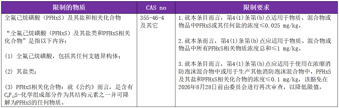 2023年8月8日,欧盟官方公报发布法规(EU) 2023/1608,正式将全氟己烷磺酸(PFHxS)及其盐和相关物质列入欧盟POPs法规附件I禁用物质清单,至此,欧盟POPs法规禁用物质清单由28项增加至29项, 该新修订将于2023年8月28号正式生效。