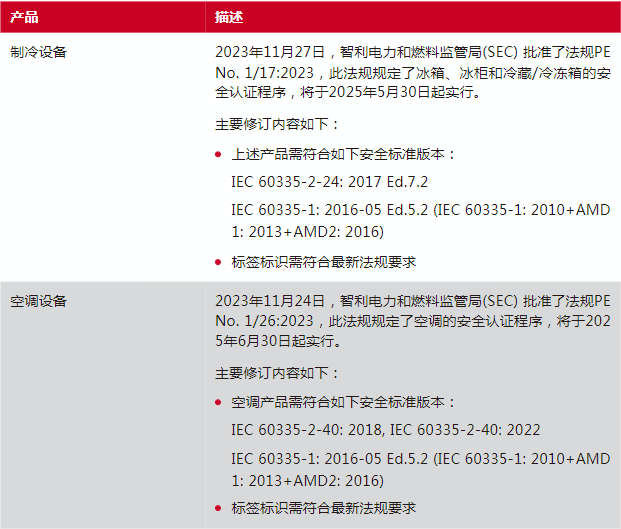 智利批准制冷设备和空调产品的相关法规