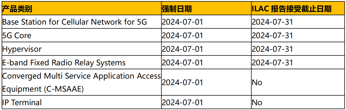 2. 自 2024 年 7 月 1 日起,蜂窝终端设备(非移动电话)必须支持 4G,否则无法申请型式认证。