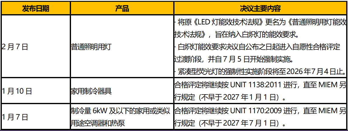 乌拉圭工业、能源与矿业部(MIEM)于2025 年1 月以来发布多项能效要求相关决议,见表2。