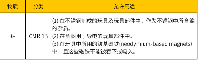 2025年7月9日,欧盟委员会提议修订玩具安全指令2009/48/EC的附件II附录A,添加了有关钴(cobalt)的项目: