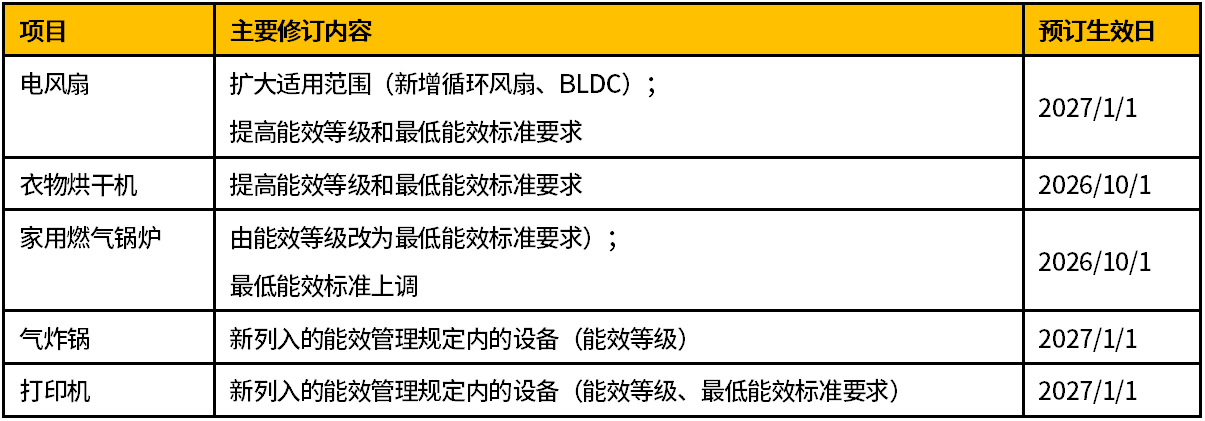 能效技术法规TR 048/2019的延迟也同时将EAEU委员会理事会制定各类能源消耗设备标签形式和执行规则的生效日期推迟到2028年3月1日。 此外,技术法规相关附件中所规定的一些要求的生效日期也推迟三年。