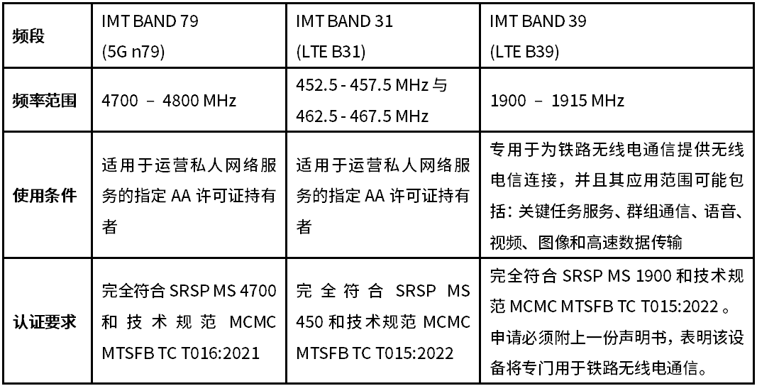 本次修订的要点是CRC将Band 7 (2500-2570 MHz/ 2620-2690 MHz)和Band 38 (2570-2620 MHz)划分用于5G NR技术,并规定了适用的技术标准。同时,通函要求相关设备需符合3GPP及SAR要求。