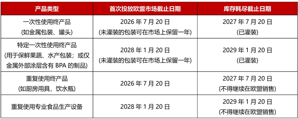 1) 针对(EU) 2024/3190附件II所列两类豁免产品需进行BPA迁移测试(检出限1μg/kg)。