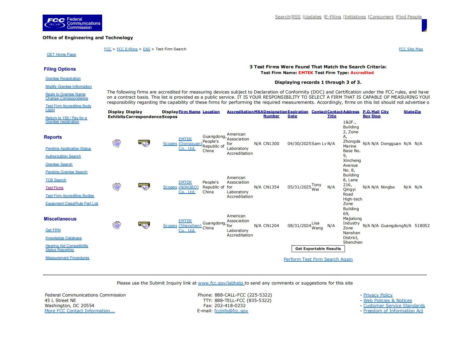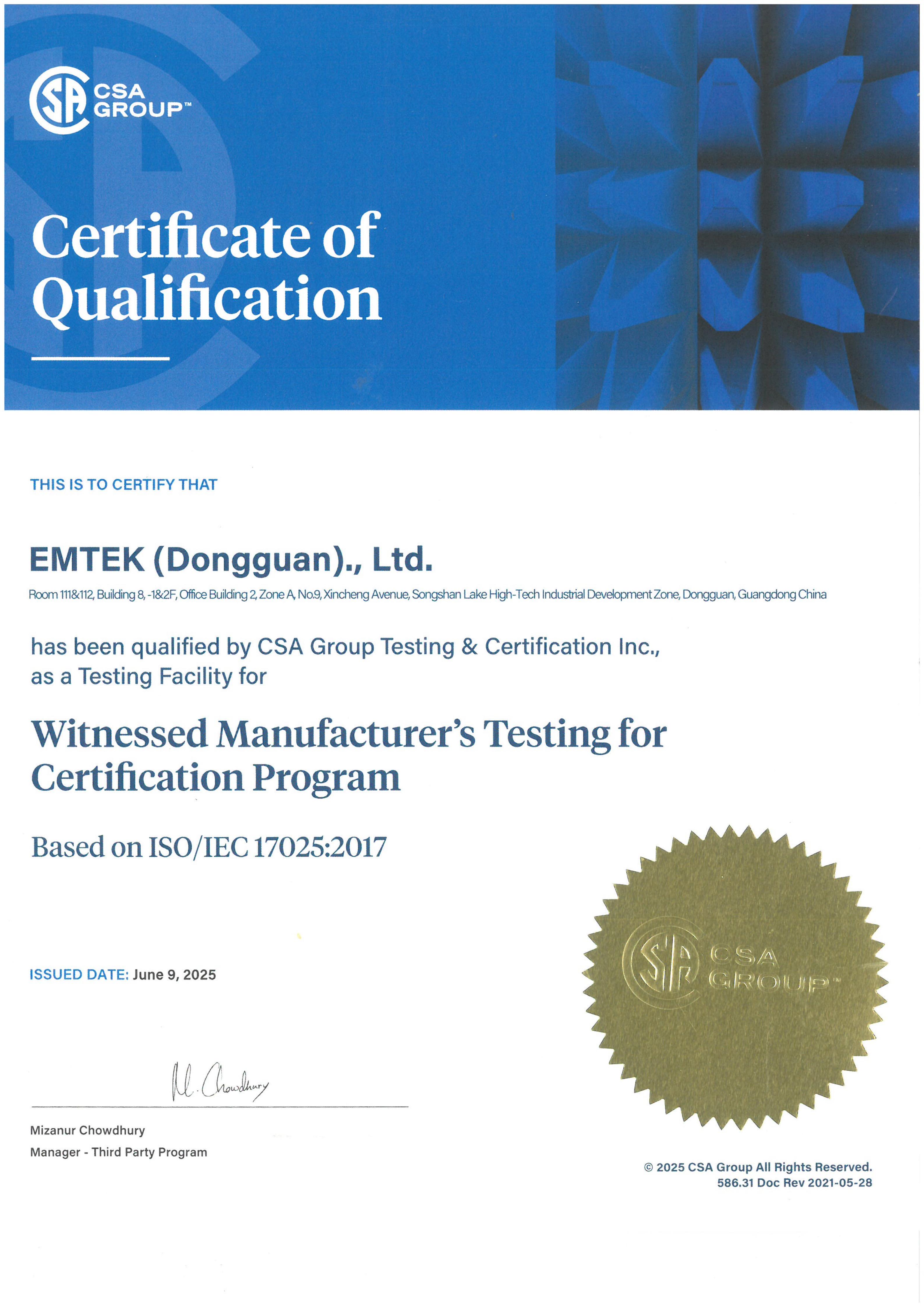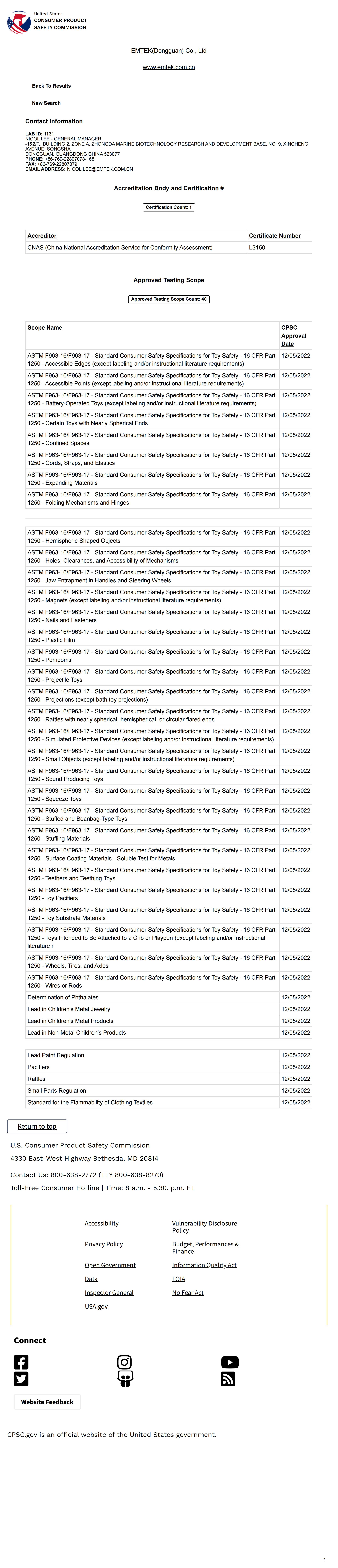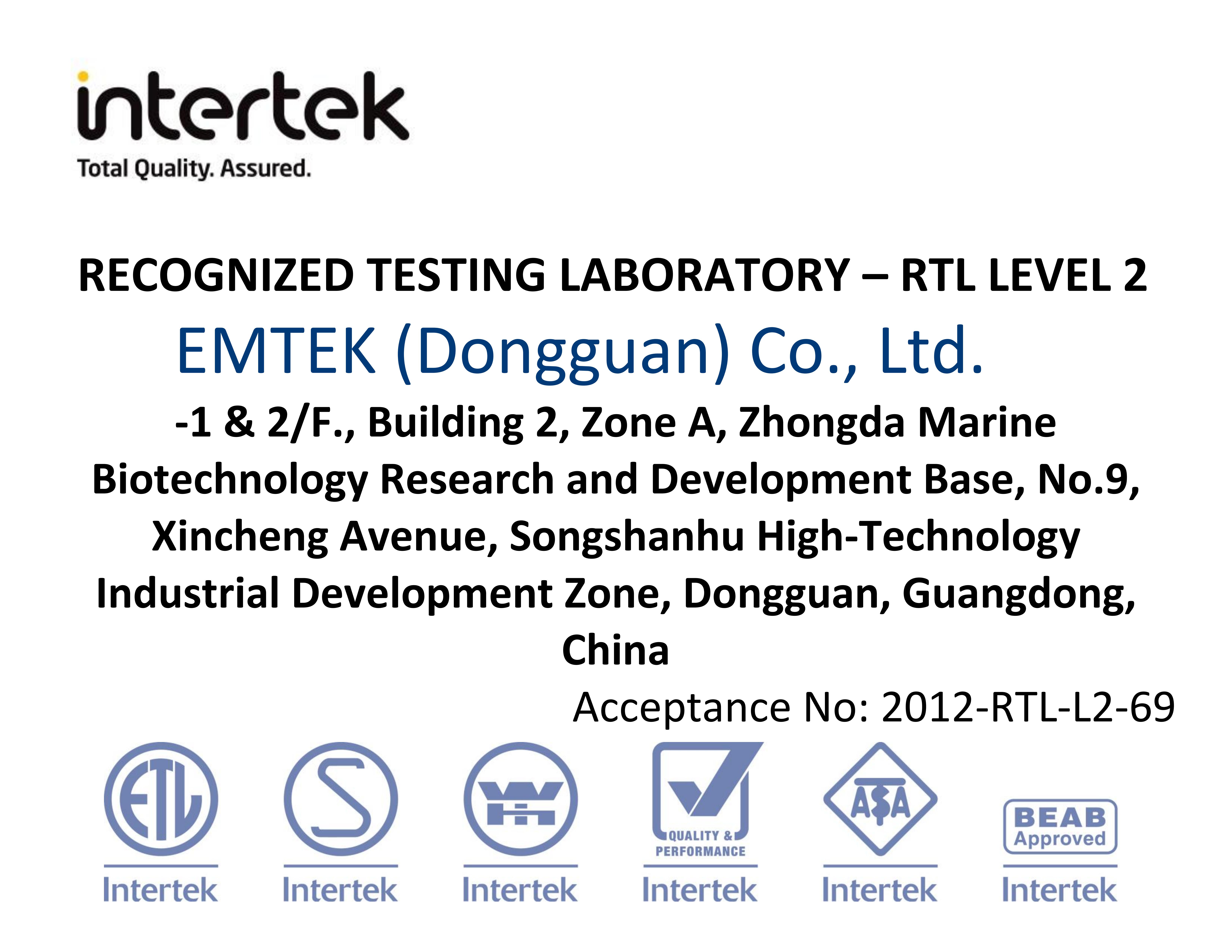 Qualifications of Dongguan Lab