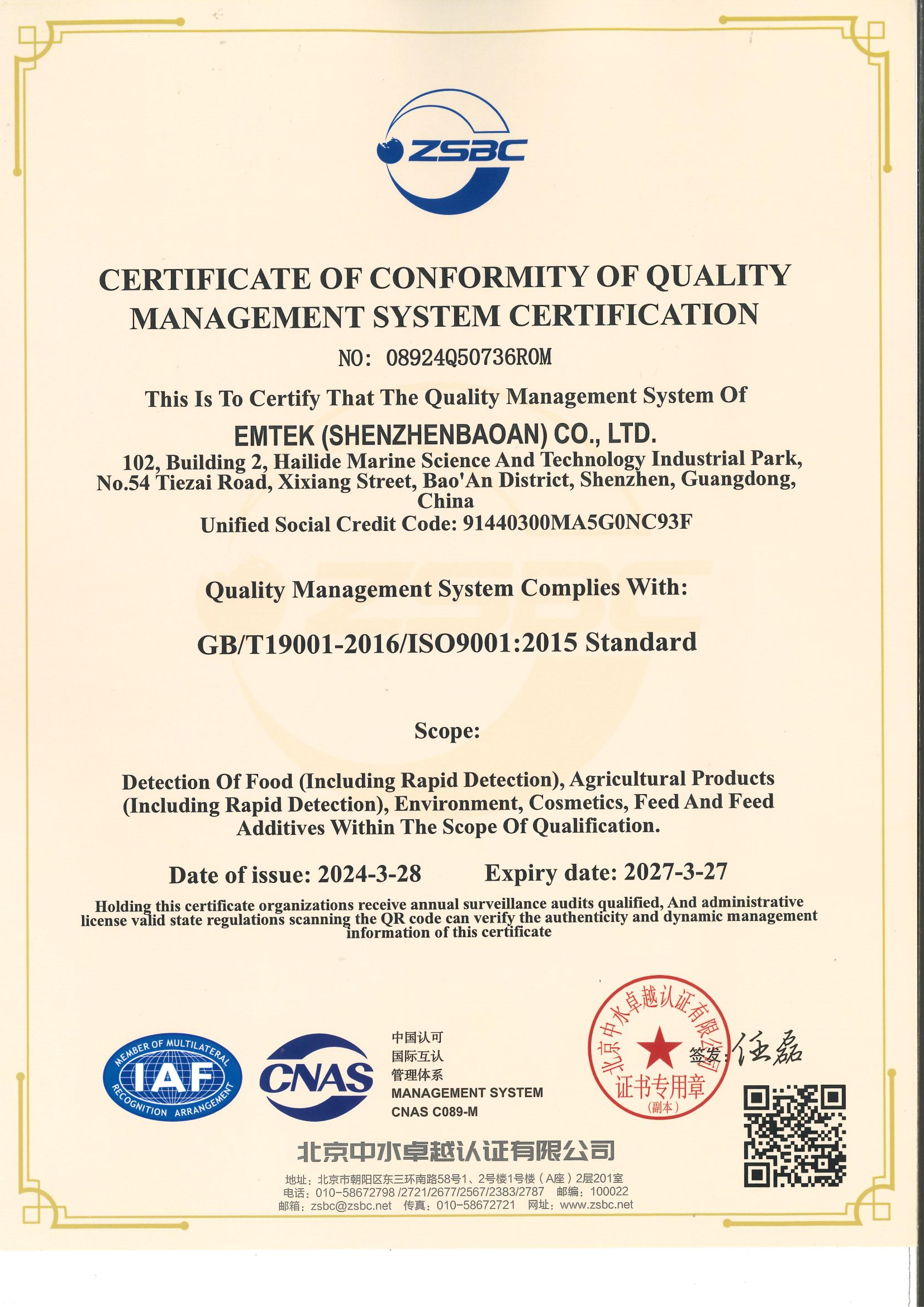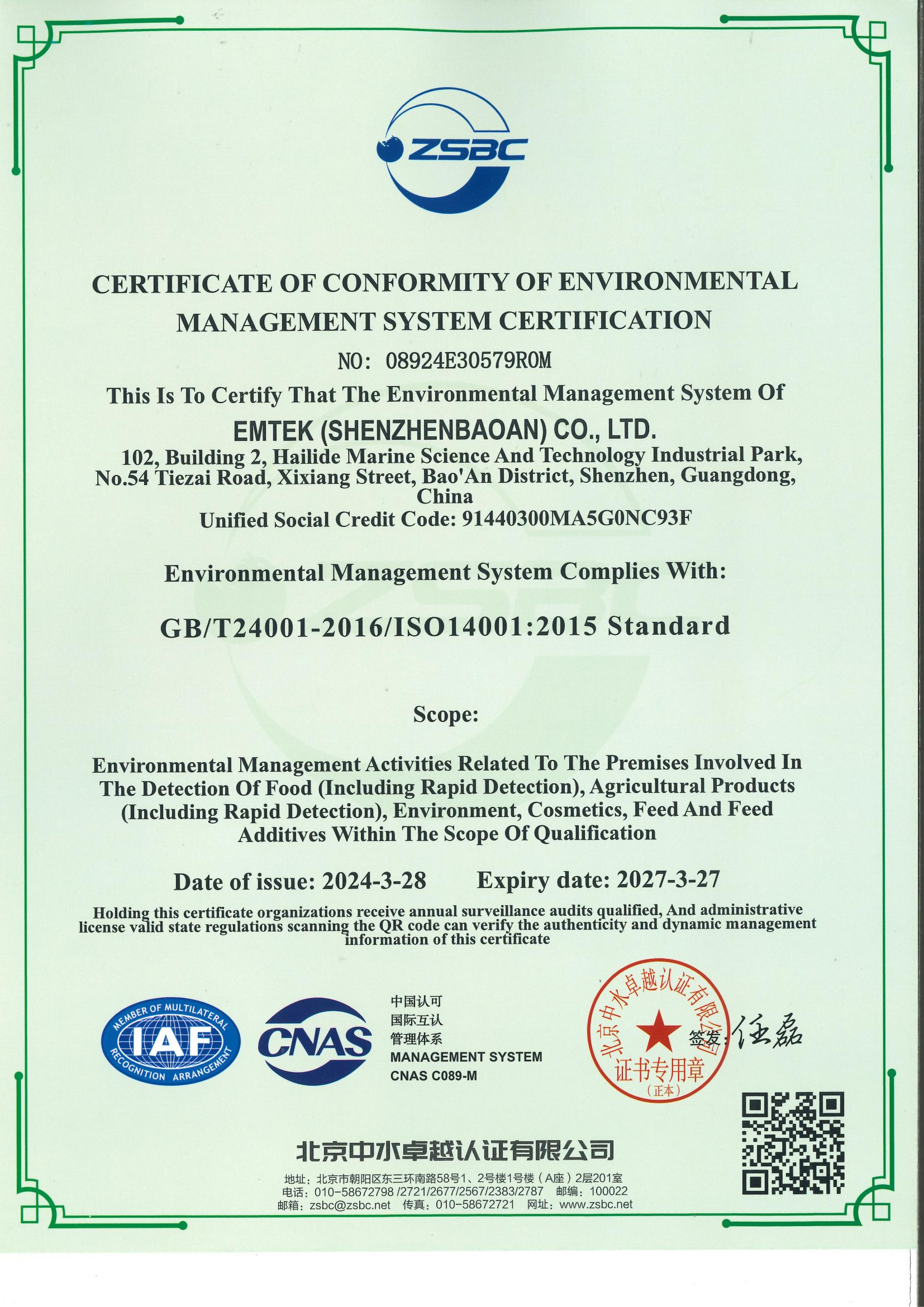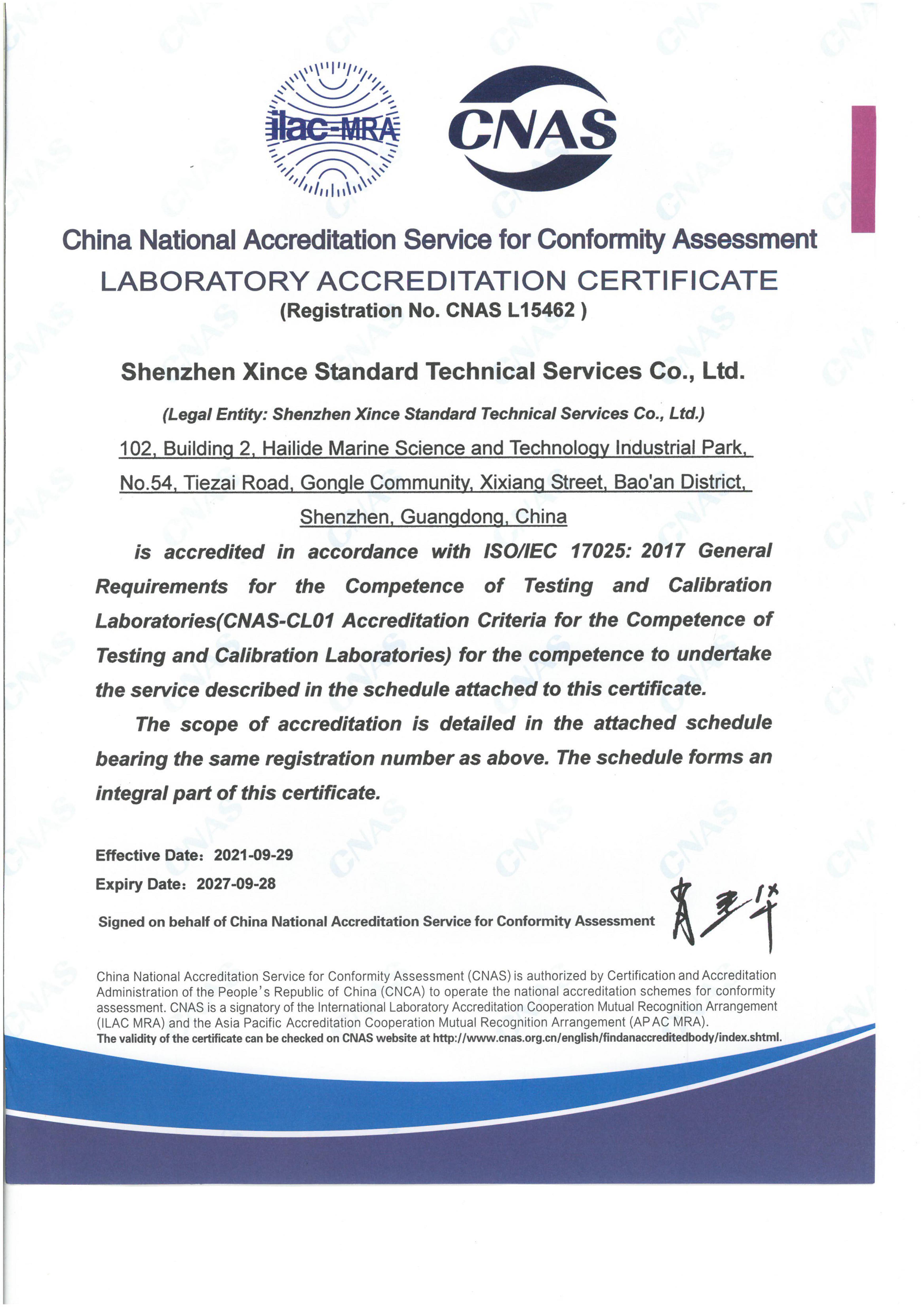 Qualifications of Dongguan Lab
