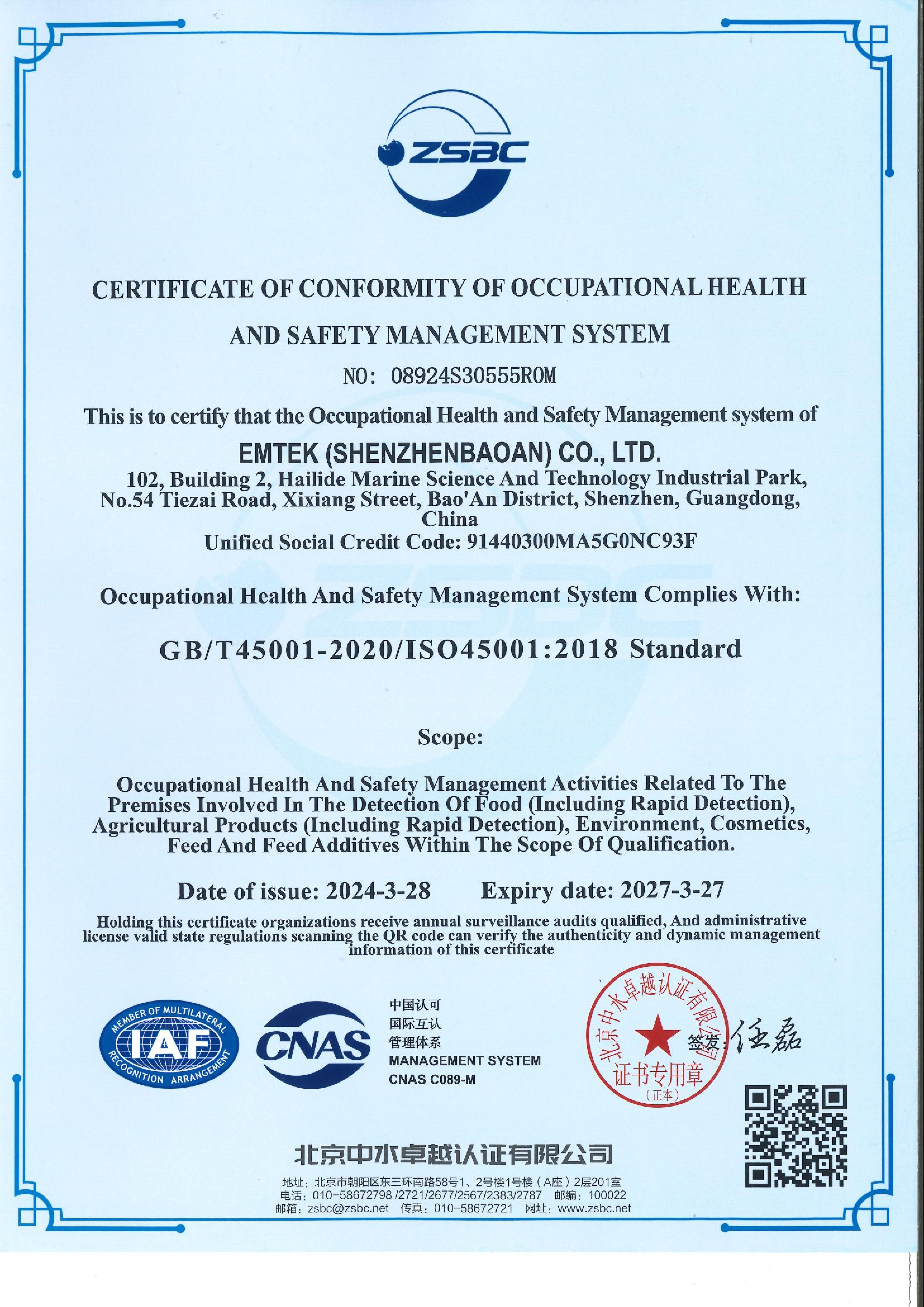 Qualifications of Shenzhen Baoan Lab